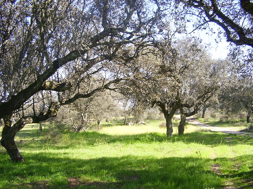 La formación vegetal autóctona es del tipo durilignosa, con un bosque esclerófilo mediterráneo representado por la encina y el alcornoque, junto a otras especies que componen el matorral como la jara, aulaga, cantueso, etc.