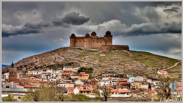 En un lugar privilegiado próximo al puerto de la Ragua, único paso entre las vertientes norte y sur de Sierra Nevada, se encuentra La Calahorra; desde cualquier punto en un radio de varios kilómetros, se puede apreciar la belleza del singular conjunto que forman sus blancas casas escalonadas en la ladera montañosa, la iglesia y el último castillo de corte medieval de Andalucía. Esta curiosa fortaleza, construida en los primeros años del siglo XVI, declarada Monumento Histórico-Artístico Nacional, guarda en su interior un magnífico patio de factura renacentista, ornamentado con mármoles italianos; en su exterior responde al estilo de una construcción militar de época de guerra, más propia de períodos anteriores, sin embargo, la amenaza de levantamientos y revueltas de los moriscos que aún habitaban esta zona inmediata a Sierra Nevada y su vertiente sur, La Alpujarra, recomendaba a los gobernantes cristianos construir una fortificación inexpugnable, y que sirviera también de cárcel -todavía se conservan los calabozos de sus sótanos- a los insurrectos.