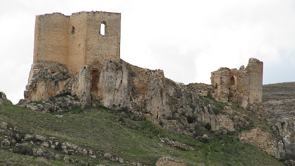 Vigilante del pueblo está el castillo en lo alto, semiderruído.